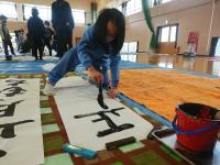 例年通り、体育館全体を使って、二人一組で、書き初めに挑戦しました。
