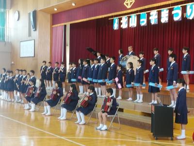 他の学年より人数が少ない4・5年生ですが、2学年が一緒になり、50名を超える人数ではく力のある合唱と合奏を行いました。